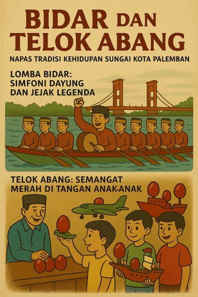 PALEMBANG, LogikaIndonesia.Com – Kota yang lahir dari aliran Sungai Musi, tradisi bukan sekadar peninggalan nenek moyang. Ia adalah denyut hidup yang terus memompa identitas warga mengikat masa lalu, kini, dan masa depan dalam satu helai napas budaya. Di tengah semarak bulan kemerdekaan, dua tradisi menonjol sebagai wujud cinta Palembang pada akar sejarahnya, Lomba Bidar dan Telok Abang.