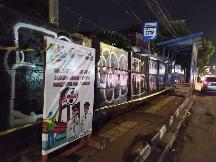 PALEMBANG,LogikaIndonesia.Com – Di bawah langit sore Palembang yang mulai meredup, panitia lomba mural tengah menyiapkan salah satu titik utama di depan Sekretariat KONI Sumsel. Cat dasar hitam telah diratakan, police line dipasang, dan papan pengumuman berdiri tegak—semua siap menyambut goresan pertama dari para seniman muda. Namun, harapan itu seketika tercoreng. Sekitar pukul 19.00 WIB Jum’at (5/8), cat putih menyelimuti seluruh permukaan, menghapus persiapan yang baru saja rampung.