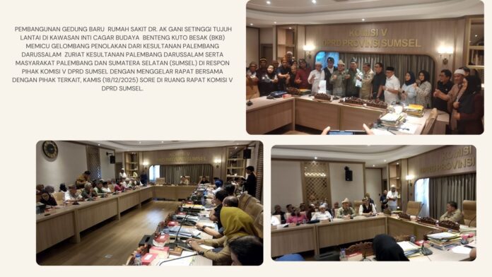 Logika Indonesia.Com – Rencana pembangunan gedung baru Rumah Sakit dr. AK Gani setinggi tujuh lantai di kawasan inti Cagar Budaya Benteng Kuto Besak (BKB) terus menuai gelombang penolakan. Kesultanan Palembang Darussalam, zuriat Kesultanan, budayawan, sejarawan, hingga masyarakat Sumatera Selatan secara tegas menyatakan keberatan atas proyek yang dinilai mengancam kelestarian situs sejarah tersebut.